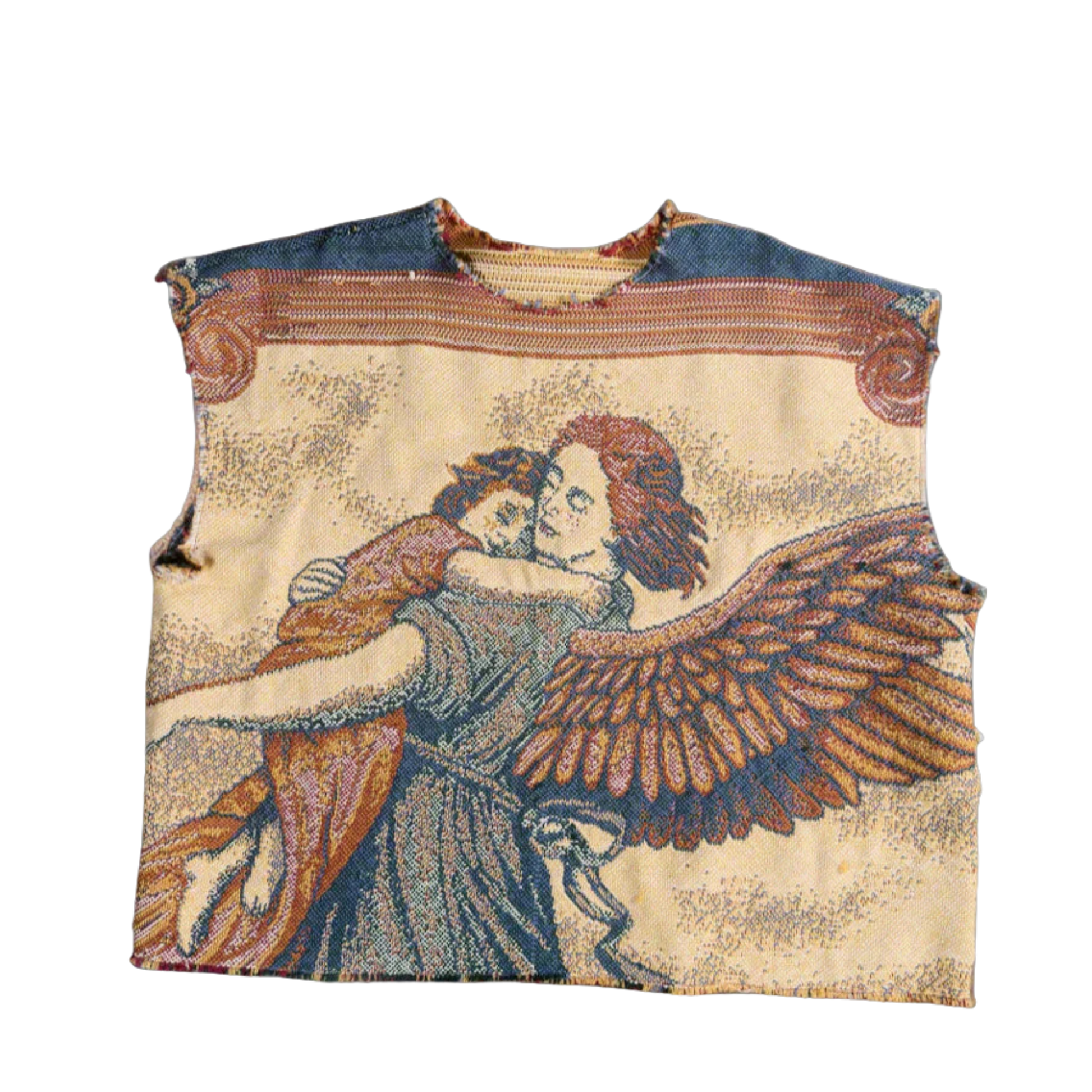 Wrap yourself in comfort and style with this one-of-a-kind handcrafted vest. Made from soft quilted fabric, it combines the warmth of your favorite blanket with unique style. Perfect for lounging at home, running errands, or layering on chilly evenings, this vest brings a touch of handmade charm to your wardrobe.