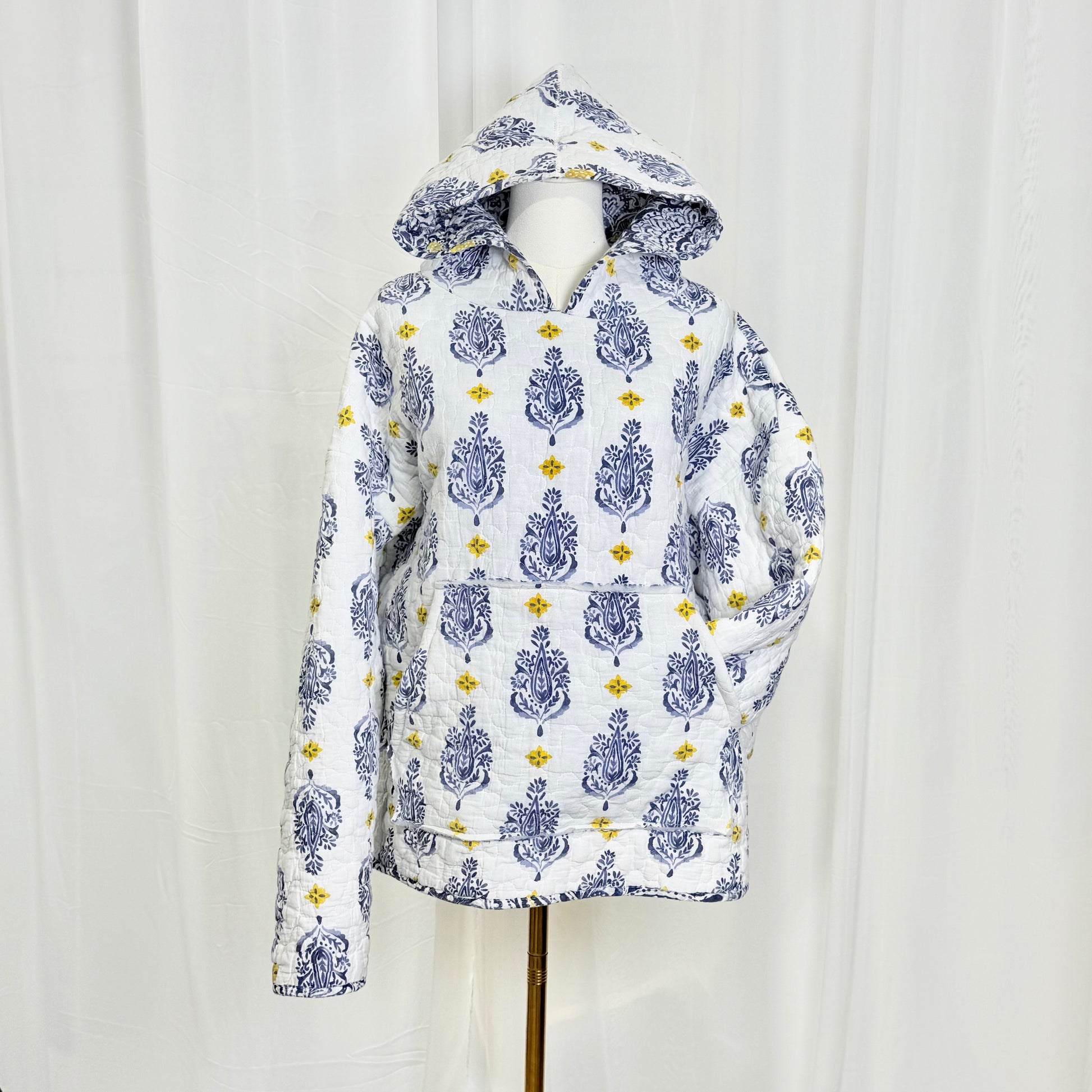 Wrap yourself in comfort and style with this one-of-a-kind handcrafted quiltoodie. Made from soft quilted fabric, it combines the warmth of your favorite blanket with the everyday ease of a hoodie. Perfect for lounging at home, running errands, or layering on chilly evenings, this hoodie brings a touch of handmade charm to your wardrobe.