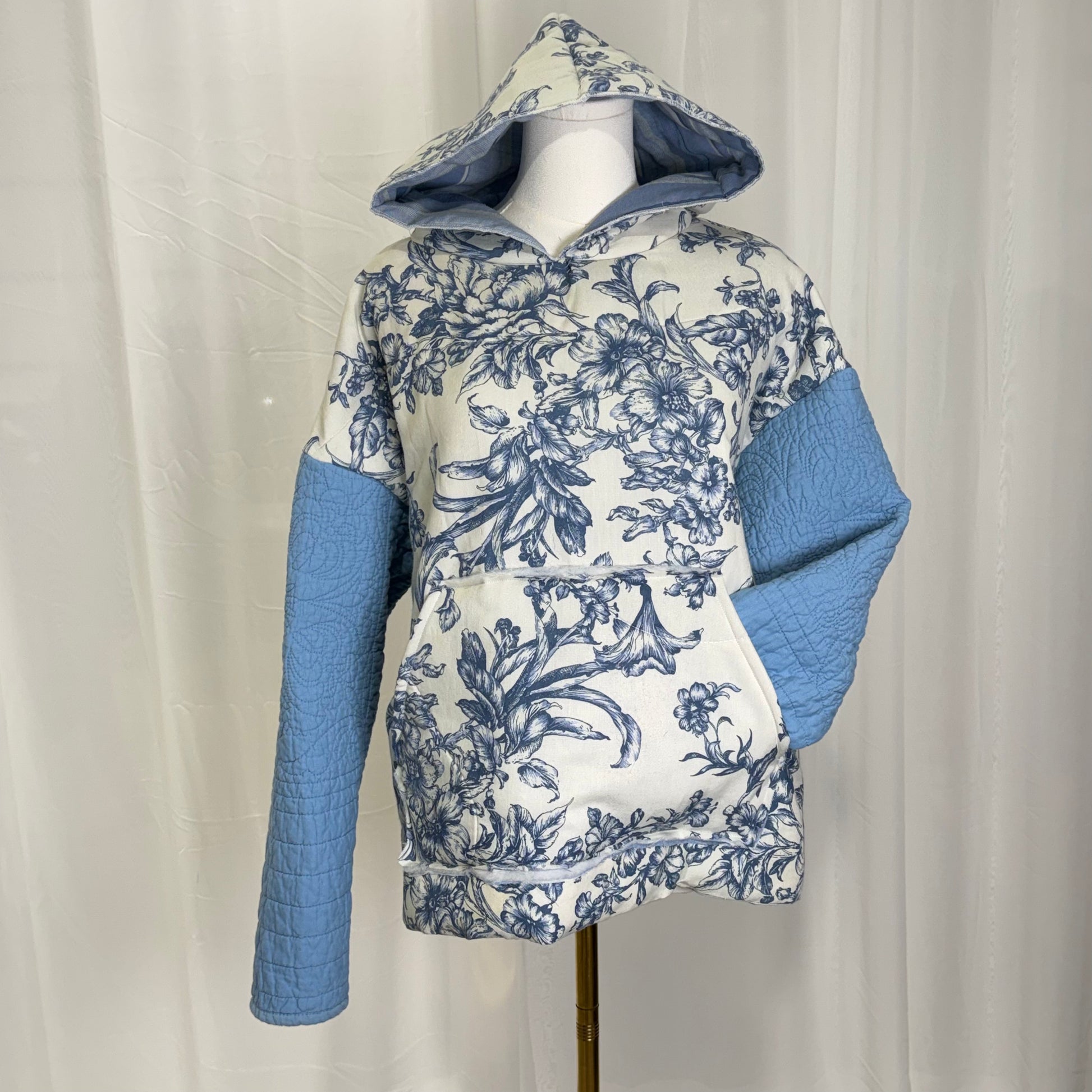 Wrap yourself in comfort and style with this one-of-a-kind handcrafted quiltoodie. Made from soft quilted fabric, it combines the warmth of your favorite blanket with the everyday ease of a hoodie. Perfect for lounging at home, running errands, or layering on chilly evenings, this hoodie brings a touch of handmade charm to your wardrobe.