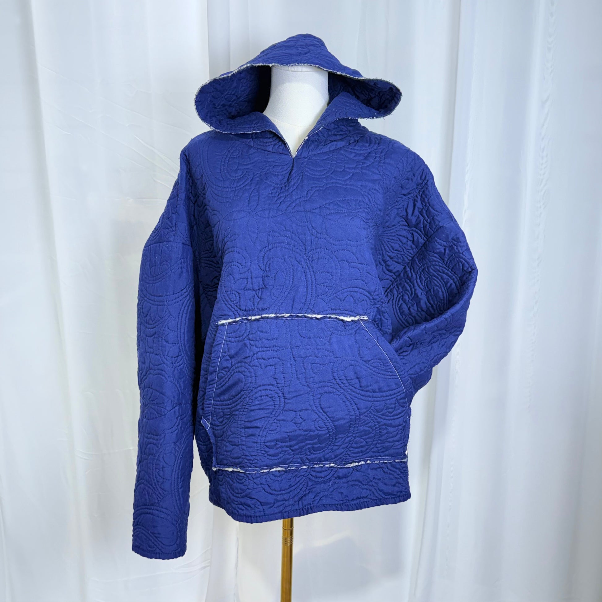 Wrap yourself in comfort and style with this one-of-a-kind handcrafted quiltoodie. Made from soft quilted fabric, it combines the warmth of your favorite blanket with the everyday ease of a hoodie. Perfect for lounging at home, running errands, or layering on chilly evenings, this hoodie brings a touch of handmade charm to your wardrobe.